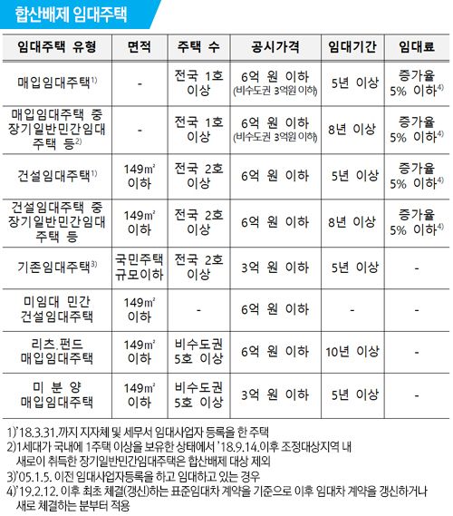 합산배제 신고대상은 전용면적 및 공시가격 등 요건을 갖춘 임대주택, 사원용 주택 등(기숙사, 미분양 주택 포함)과 주택건설 사업자가 주택 건설을 위해 취득한 토지다.
