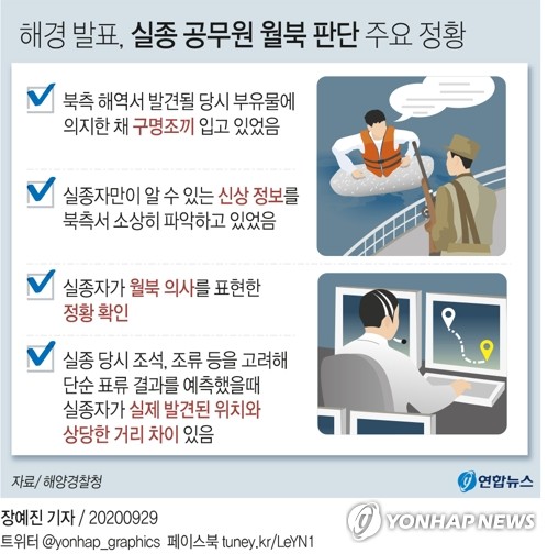 해경은 "남측에 채무가 있었다는 정황만으로는 월북을 단정하기 어렵다"라고 덧붙였다.