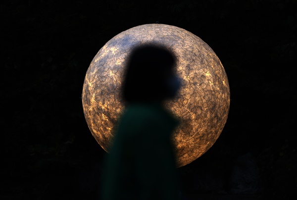 ▲ 추석 연휴 첫 날인 30일 오후 시민이 서울 노원구 당현천에 설치된 "노원달빛산책" 작품 "소원" 앞에서 산책을 하고 있다. | |