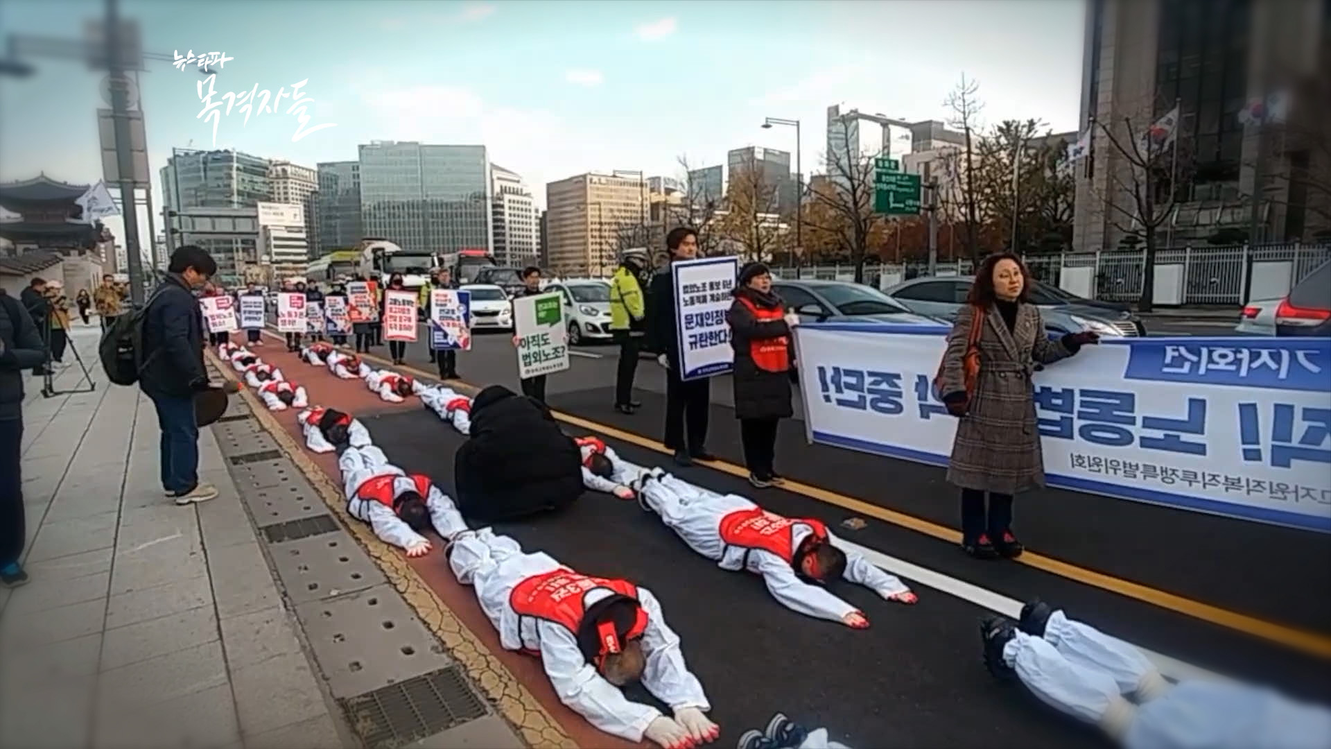▲ 법외노조 취소와 해고자 복직을 요구하는 전교조 조합원들의 오체투지 (2019년)