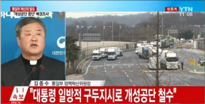 ▲2017년 통일부는 개성공단 철수가 박근혜 전 대통령의 구두지시로 결정됐다고 발표했다 ⓒYTN 유튜브 화면 캡처