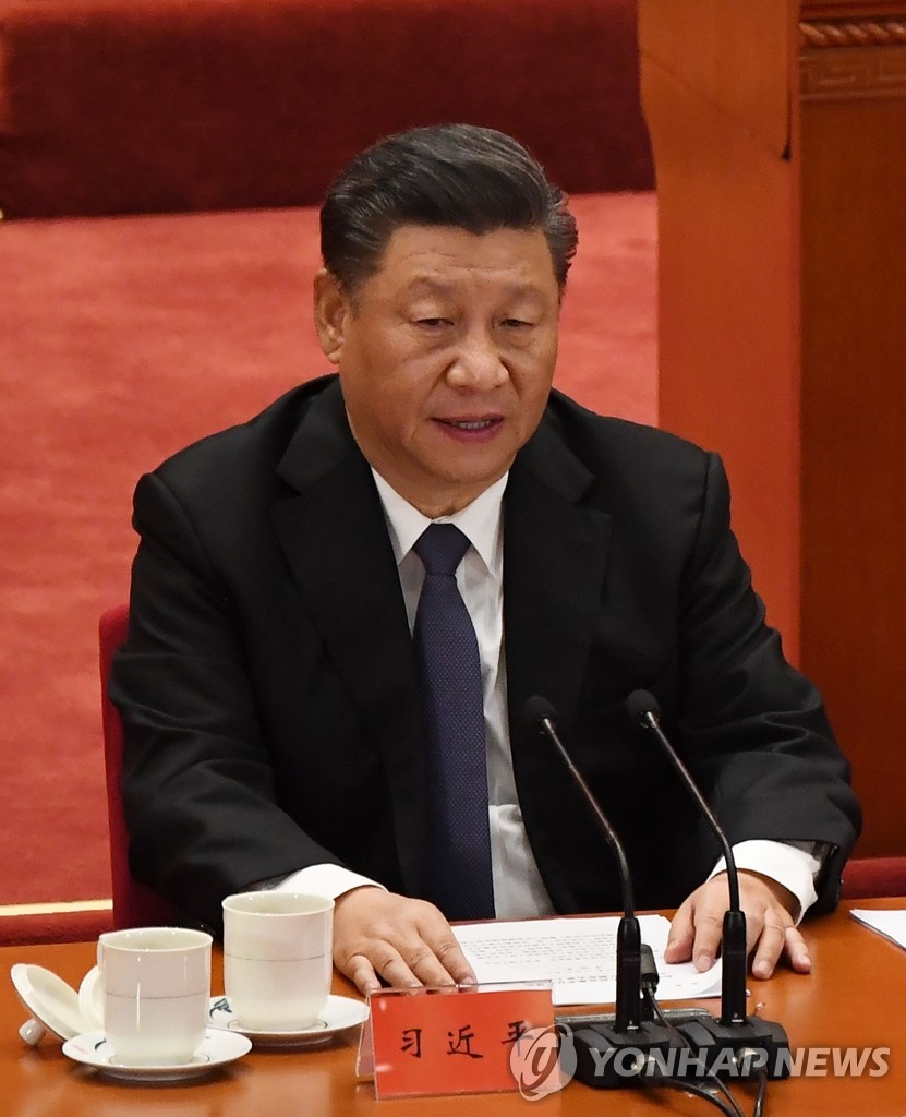 인민해방군 한국전쟁 참전 70주년 행사서 연설하는 시진핑 시진핑 중국 국가주석이 2020년 10월 23일 베이징의 인민대회당에서 열린 인민해방군의 한국전쟁 참전 70주년 기념행사에 참석해 연설하고 있다. [AFP·연합뉴스 자료사진]