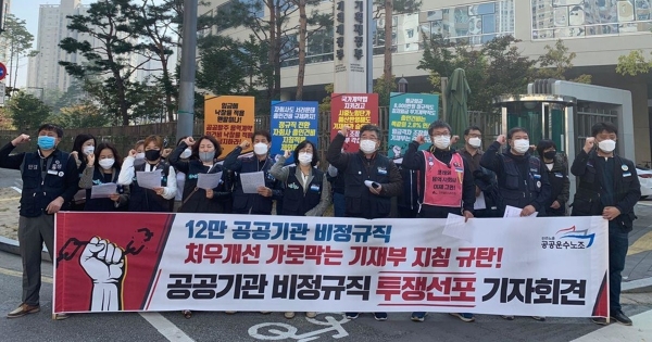 지난 19일, 전국공공운수사회서비스노동조합(공공운수노조)는 서울 중구 민주노총 13층 대회의실에서 ‘공공비정규노동자 집중파업 선포 기자회견’을 열고 현재의 상황을 폭로했다.