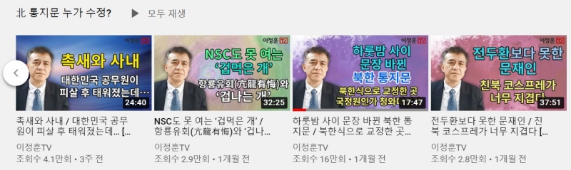 ▲ 유튜브 채널 '이정훈TV' 영상 목록.