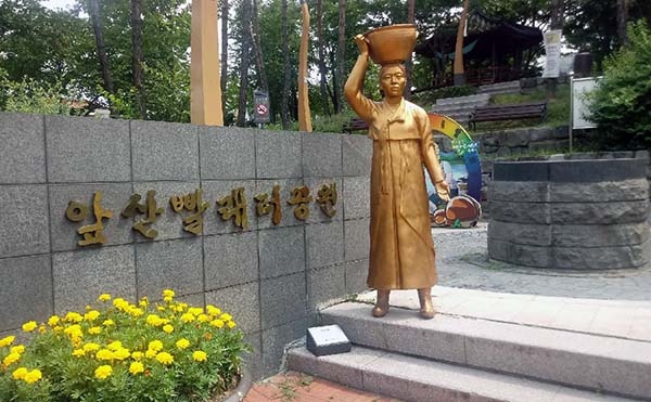 | ▲ 보도연맹 학살지 중 한 곳인 대구 남구 대명동 '앞산 빨래터'의 입구 모습. 민간인 학살과 관련되는 내용 안내는 전혀 없고, 이곳에서 '빨래터 축제'가 진행된다는 현수막만 보였다. |