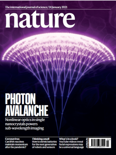 화학공학/고분자공학부 서영덕 성대-화학연 학연교수 연구팀은 미국/폴란드 연구팀과의 공동 연구로, ‘툴륨(Tm)’이라는 원소를 특정한 원자격자 구조를 가진 나노입자로 합성하면, 작은 에너지의 빛을 약한 세기로 쪼여도 빛이 물질 내부에서 연쇄적으로 증폭 반응을 일으켜 더 큰 에너지의 빛을 강한 세기로 방출한다는 현상을 발견했다. 연구팀은 이러한 광학적 연쇄증폭반응을 일으키는 나노입자가, 마치 빛이 눈사태를 일으키는 모습과 비슷하다는 점에 착안해 ‘광사태 나노입자’(Avalanching Nano Particle: ANP)라고 새롭게 이름 붙였다. 본 내용은 ”광사태 나노입자로부터의 거대 비선형 광학 반응(Giant Nonlinear Optical Responses from Photon-Avalanching Nanoparticles)“ 제목으로, 영국시간 2021년 1월 14일자 네이처紙(I.F.=42.8)의 표지논문에 선정됐다.