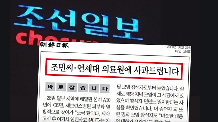 서 교수의 지적대로 ‘반성’은 중요하다. 스스로가 ‘내로남불’이라 비판받는 당사자라면 특히 그렇다. 마찬가지로 언론의 반성도 중요하다. ‘조민, 세브란스병원 피부과 일방적으로 찾아가 “조국 딸이다, 의사고시 후 여기서 인턴하고 싶다”’는 제목의 2020년 8월28일자 조선일보 지면 기사는 조선일보가 하루 만에 사과할 만큼 부실했다. 조국 전 장관 측은 해당 기사를 두고 “공적 대상에 관한 것도 아니고 공적 관심사의 내용도 아니다. 오로지 조국 전 장관과 딸에 대한 혐오와 모욕을 부추기기 위해 사실관계를 완전하게 날조한 기사”라고 주장했다.