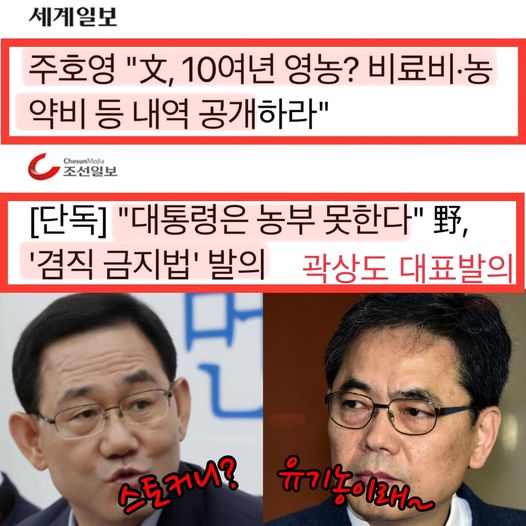 단독 "대통령은 농부 못한다" 野, '겸직 금지법' 발의 -15일 조선일보-