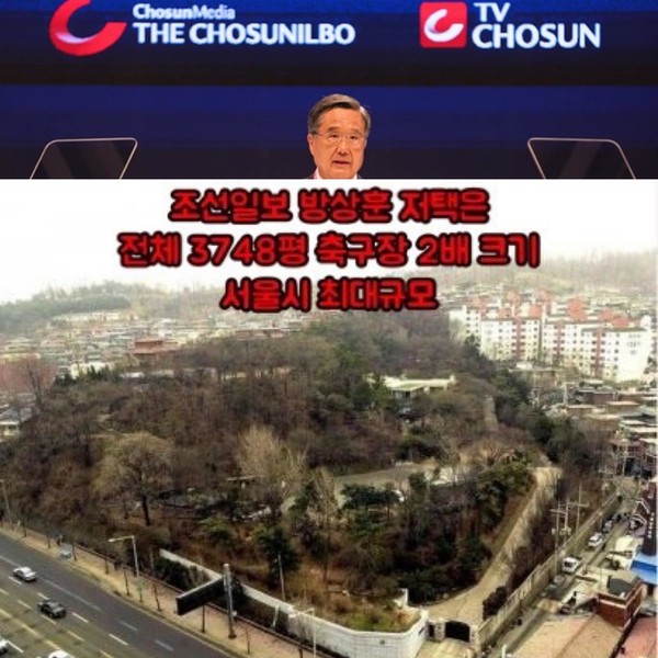 '아방궁 공격' 조선일보에 "항공사진으로 보니 방상훈 저택과 아파트 단지는 마치 홍해가 갈라지듯이.."