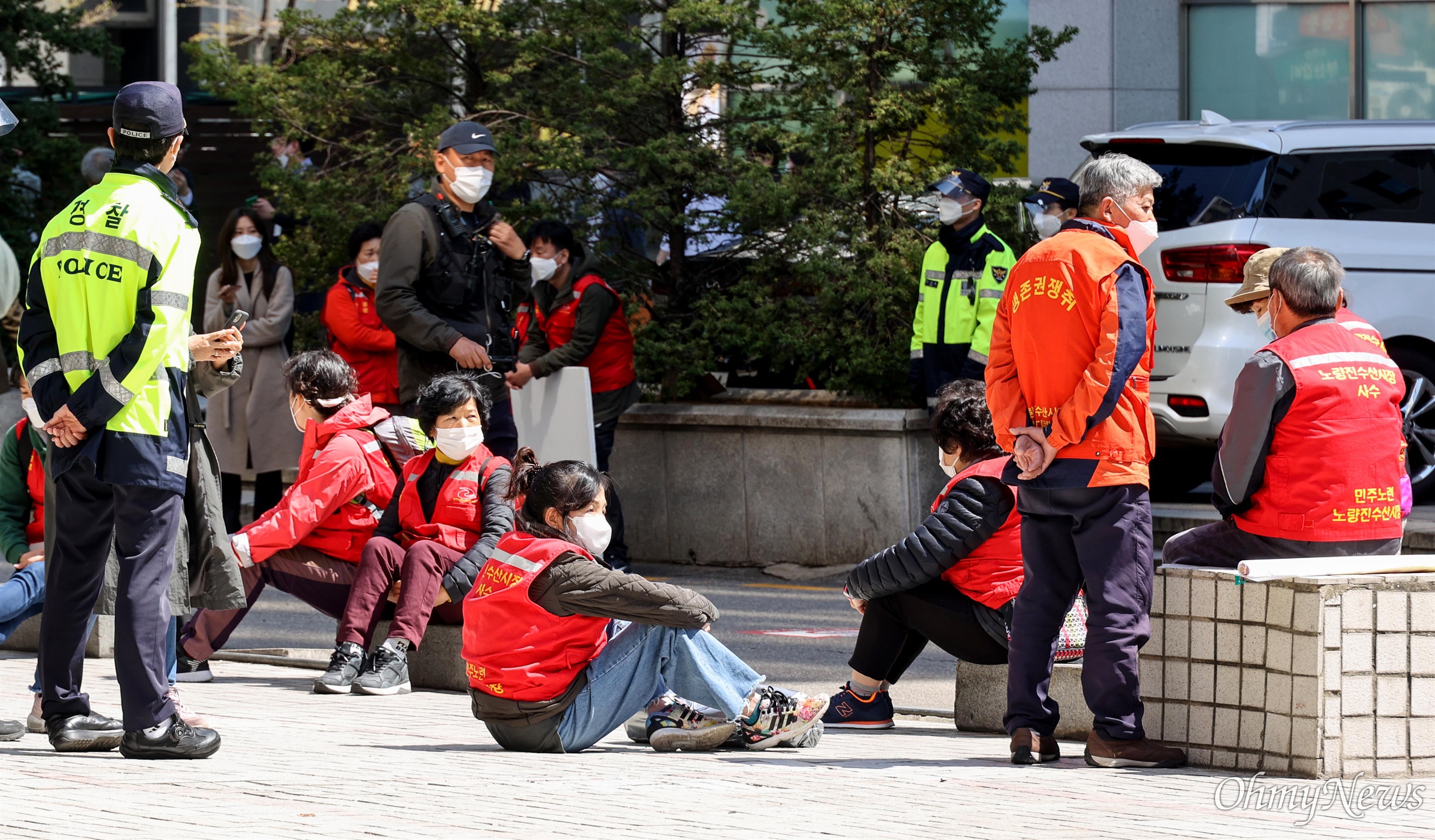 [유성호 기자] ▲ [오마이포토] 노량진수산시장 상인, 오세훈 선거사무소 앞 노숙농성 돌입 ⓒ 유성호 노량진수산시장 구시장 상인과 시민대책위 회원들이 오세훈 국민의힘 서울시장 후보와의