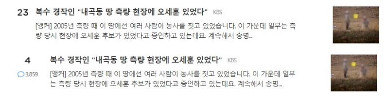 이어 KBS의 후속 보도 역시 순위권에 있었다. KBS의 “당시 측량팀장 ‘오세훈 입회했다’..입회 서명은 누가” 리포트는 3월 28일 ‘댓글 많은 뉴스’ 1위, ‘열독률’ 12위를 기록했고, 다음날인 3월 29일 ‘많이 본 뉴스’ 27위에 올랐다. 이날 한겨레의 “‘내곡동 땅 몰랐다’던 오세훈.. ‘땅 측량때 있었냐가 중요한가?’”기사가 많이본 뉴스 23위, ‘댓글 많은 뉴스’ 3위에 올랐다.