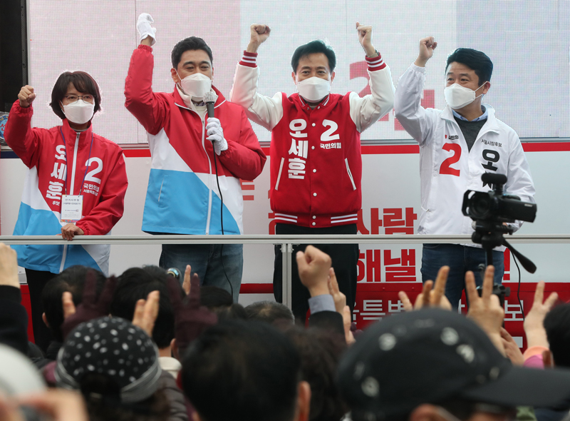 ▲ 오세훈 국민의힘 서울시장 당시 후보자 유세. ⓒ연합뉴스