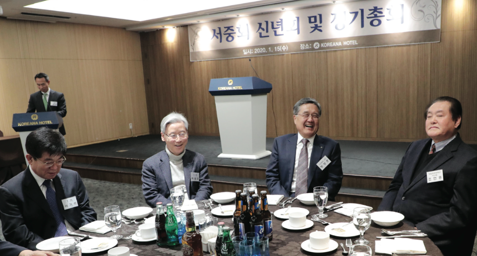 ▲ 2020년 1월 15일 서중회 신년회 및 정기총회 사진, 테이블 왼쪽부터 서기석 전 헌법재판관, 여상규 20대 국회의원, 방상훈 조선일보 사장, 조연흥 방일영문화재단 이사장 (출처: 방일영문화재단 뉴스레터 제45호)