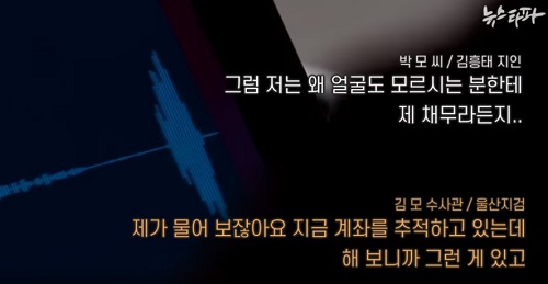 <뉴스타파>가 공개한 녹음파일에 따르면, 울산지검 소속 김모 수사관은 김흥태 씨 주변인들에게 김 씨로부터 금전 피해를 입은 사실이 입는지 집중적으로 캐물었다.