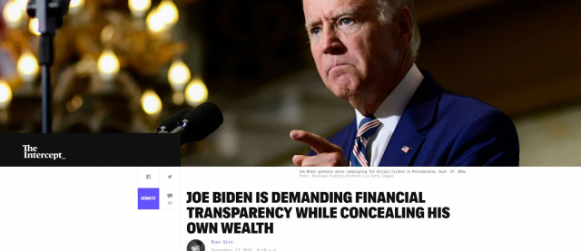 (☞ 관련 기사 : <인터셉(The Intercept)> 2019년 9월 12일 자 'Joe Biden Is Demanding Financial Transparency While Concealing His Own Wealth', <워싱턴포스트> 2019년 6월 25일 자 'Once the poorest senator, 'Middle Class Joe' Biden has reaped millions in income since leaving the vice presidency')