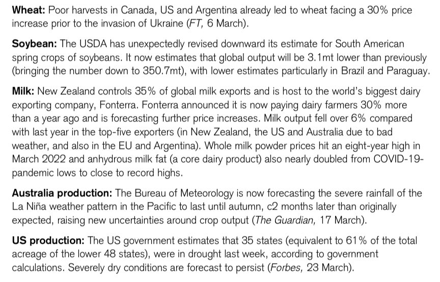그는 그의 뜻을 얻을 것이다.유엔식량농업기구(UN Food and Agricultural Organization)는 해바라기, 곡물 및 옥수수의 20-30%가 심거나 수확되지 않을 것으로 추정합니다.우크라이나 생산량 감소(FT, 4월 9일)로 인해 식품 가격이 8-22% 더 오를 것으로 예상합니다.