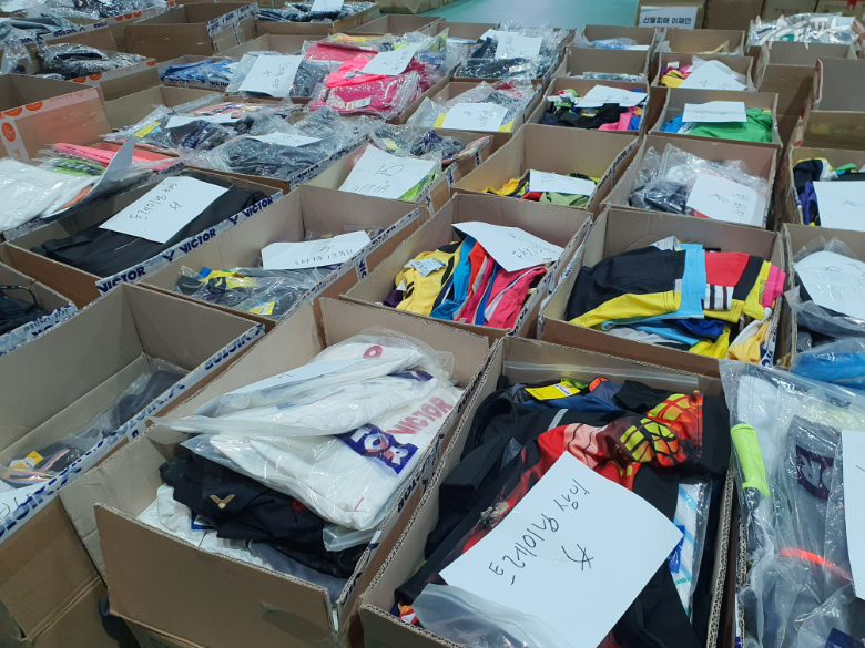 뜯지도 않고 쌓여있는 의류들. 주인을 찾아가지 못해 방치되어 있었다.