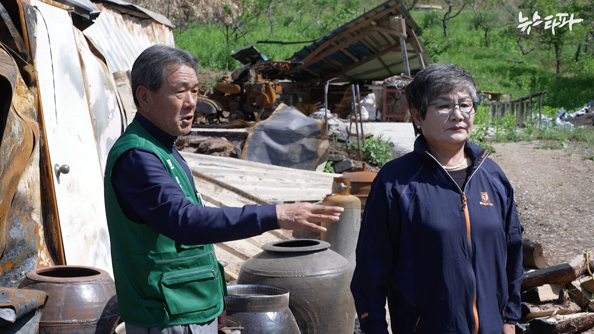 울진 산불 피해 이재민인 장도영·손미옥 씨. 장도영 씨는 울진 산불피해 이재민 대책위원회 위원장을 맡고 있다.