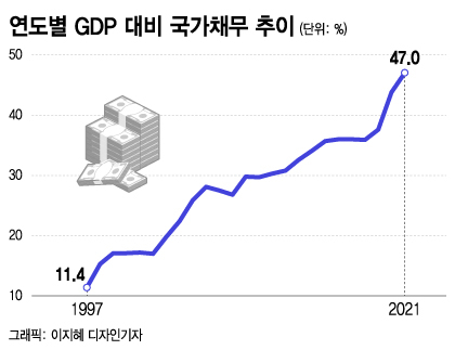 강성진 고려대 경제학과 교수도 "낙수효과를 부정하면서 부채주도성장을 안 하겠다고 한게 이번 정부인데 전체적으로 보면 가장 많이 부채를 이용한 정부가 됐다"며 "정부주도형 경제정책이었는데 실질적으로 성장률을 끌어올리지 못하고 코로나 핑계는 대겠지만, 코로나 이전 3년 동안도 대부분 일자리가 정부주도로 만들어져 본인들이 주장하는 좋은 일자리가 아니라 정부주도 일자리가 됐다"고 말했다.