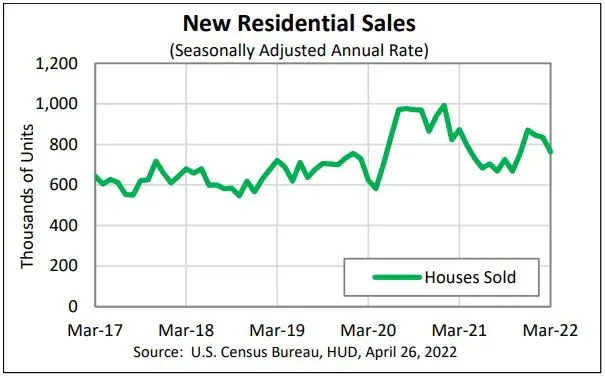 미 연준의 긴축 정책이 3월 금리 인상으로 본격적으로 시작되면서 주택담보대출 금리가 오르면서 주택 수요가 줄어드는 조짐이 나타나는 것으로 보입니다. 작년 미국에서 주택 판매는 2006년 이후 가장 많았습니다.