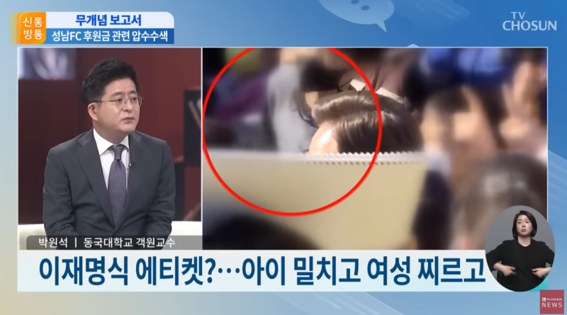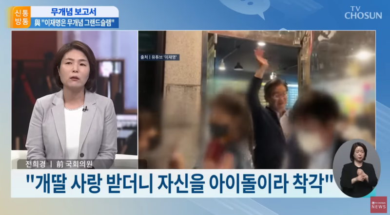 ‘이재명식 에티켓? 아이 밀치고 여성 찌르고’, ‘“개딸 사랑 받더니 자신을 아이돌이라 착각”’ 자막 내보내