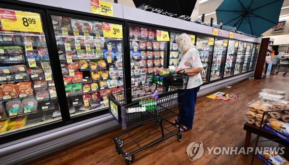 지난 7월 미국 소비지출 증가율이 0.1%에 그쳤다. 소비가 둔화되면서 미국 경기침체 경고음이 커지고 있다. 사진은 캘리포니아의 한 슈퍼마켓 /AFP 연합뉴스 높은 소비자 물가 상승과 큰 폭의 금리