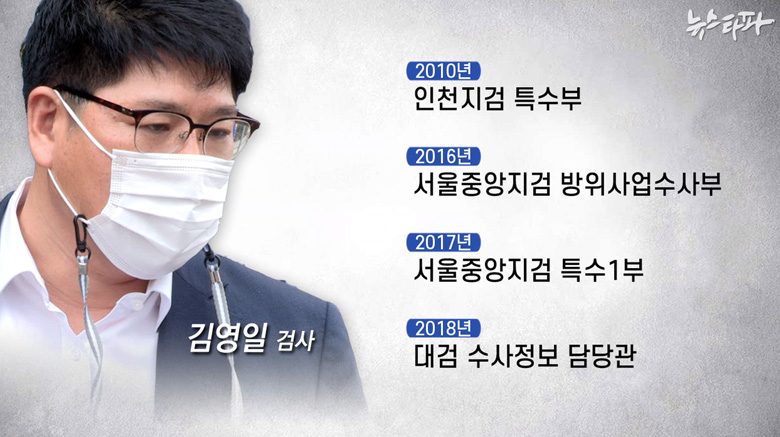 김영일 검사는 이른바 ‘고발사주’ 사건에도 개입한 것으로 의심받고 있습니다. 고발사주 사건의 주역은 대검 산하 수사정보담당관실이었는데, 사건 당시 김영일 검사는 수사정보 1담당관이었기 때문입니다. 수사정보 담당관은 잘 알려진 것처럼 윤석열 당시 총장에게 직보하는 주요 참모 중 하나입니다.