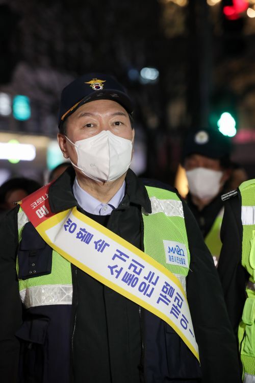 ◆…윤석열 국민의힘 대선 후보가 7일 밤 홍익자율방범대 순찰에 동행했다. (사진 = 윤석열 선대위 제공)