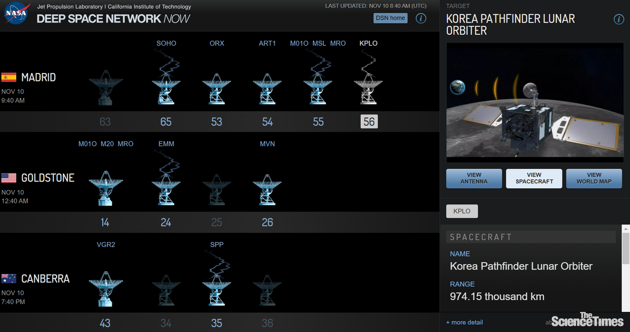 심우주인터넷(DSN) 신호를 받는 지구(NASA) 기지국은 미국, 스페인, 호주로 총 3곳이다.