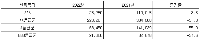 AAA등급 발행규모, 12조원대로 소폭 증가…아래 등급은 평균 40% 급감