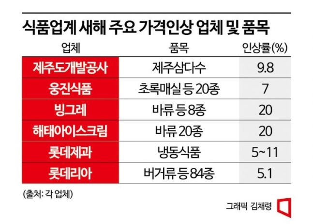 식품업계 연초 가격인상 행렬 이어져 음료·아이스크림·식품까지 줄줄이 인상 소비자 '원성'…업계는 "불가피한 인상"