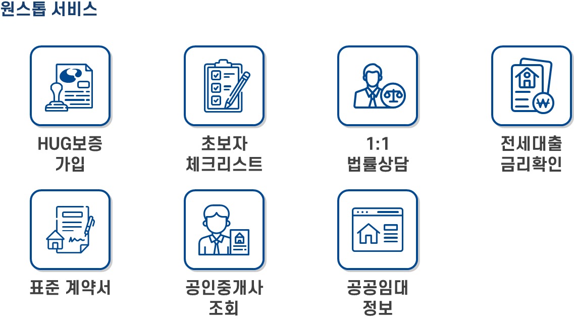 이외에도 전세계약 초심자를 위한 체크리스트, 표준계약서 양식, 한국토지주택공사(LH) 등 공공임대주택 관련 정보 및 전세대출 금리 확인, 등록임대사업자 정보 등을 확인할 수 있도록 지원한다.
