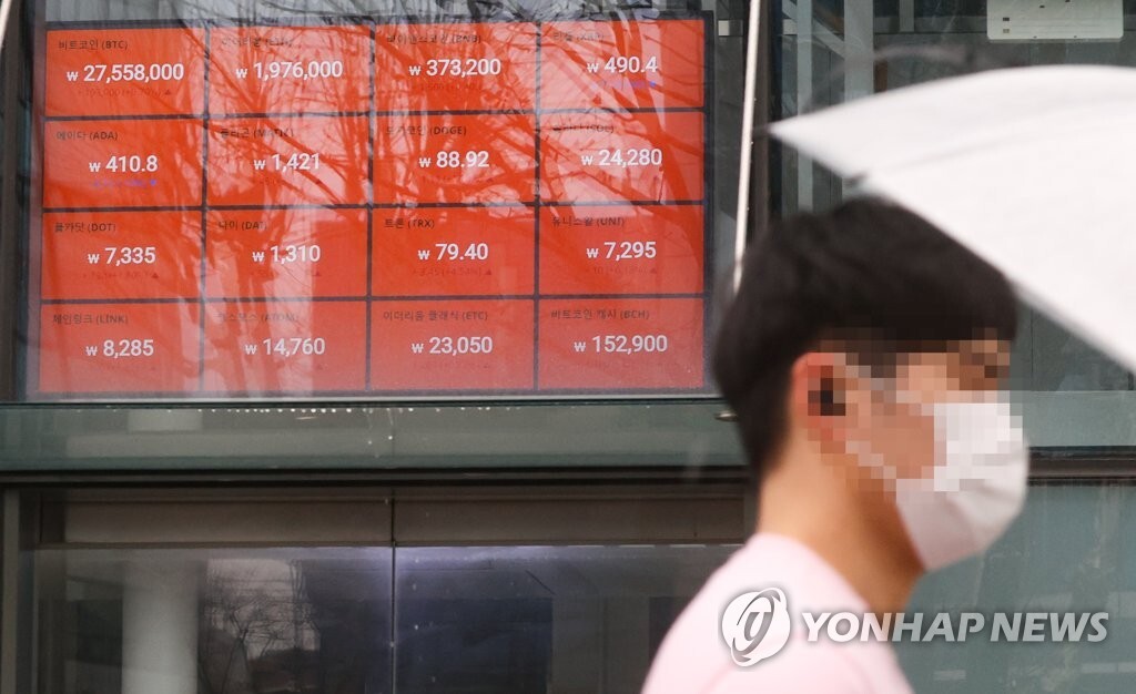 (서울=연합뉴스) 류효림 기자 = 미국 실리콘밸리은행(SVB) 파산 소식이 전해지면서 국내 시장에서 비트코인을 비롯한 주요 가상화폐 가격이 하락세를 나타내고 있다.12일 서울 서초구 빗썸고객센터 모니터에 가상화폐 실시간 거래 가격이 표시되고 있다.2023.3.12 ryousanta@yna.co.kr