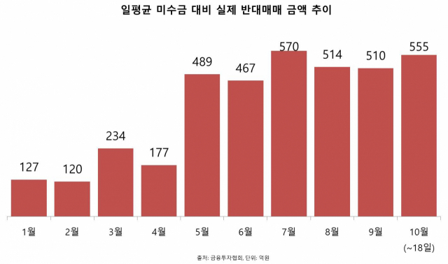 최근 증가세를 고려하면 일평균 반대매매 금액은 이달 말까지 더욱 증가할 것이라는 전망이 나온다.
