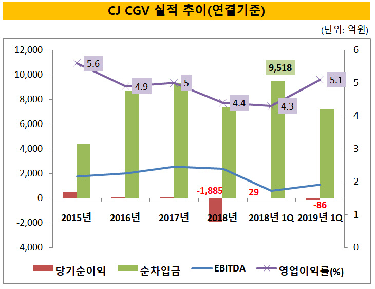 CJ CGV의 1분기 순이익을 살펴보면 86억원의 손실을 내며 전년 동기 대비 적자로 돌아섰기 때문이다. 2018년에는 1885억원의 당기순손실을 기록했다. 터키 법인의 총수익스왑(TRS) 관련 평가손실, 리스부채에 따른 이자비용 등은 여전히 실적에 부담이 되고 있다. 올해 1분기 세전이익은 91억원의 적자를 냈다.