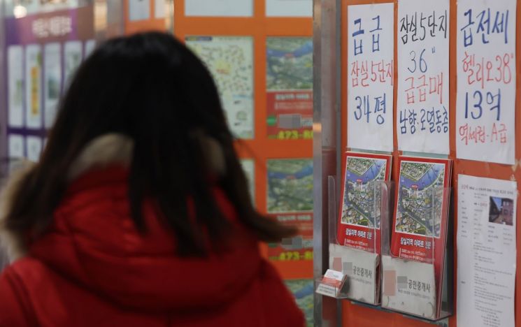 [아시아경제 차완용 기자] 지난달 서울 아파트 전세가율(매매가격 대비 전세가격의 비율)이 10년8개월 만에 최저를 기록한 것으로 조사됐다. 대출이자 부담 등으로 전세를 찾는 사람은 줄어드는데, 급매 대신 전세를 내놓는 집주인이 증가하면서 전세값이 더 크게 빠진 것으로 분석된다. 일각에서는 앞으로 전세가율 하락에 따른 부동산 시장 조정으로 매매값 하락이 이어질 것이란 예측도 나온다. 서울 주요 대단지 아파트의 전세가율은 50% 수준에 머물고 있다. 사진은 서울의 한 부동산중개업소 앞. [이미지출처=연합뉴스] 6일 KB부동산에 따르면 지난달 서울 아파트 전세가율은 52.0%로 나타났다. 한 달 전인 지난해 12월 52.9%보다 0.9%포인트(P) 하락했다. 1년 전 56.0%보다는 4.0%포인트 낮다. 20..